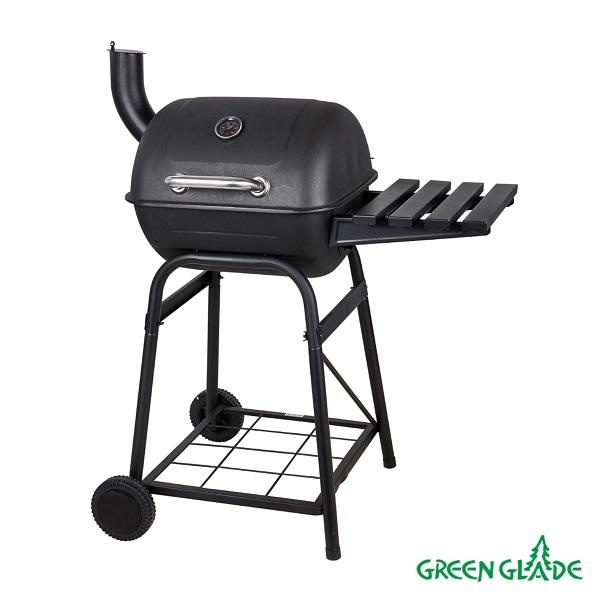 Гриль Green Glade 11070 – это замечательное решение для отдыха на природе в кругу семьи или друзей. Благодаря наличию полочек можно удобно расположить все вспомогательные элементы и продукты для приготовления еды. Данная модель имеет два колеса для передвижения конструкции с места на место. На крышке есть термостат, который помогает контролировать температуру приготовления блюда.